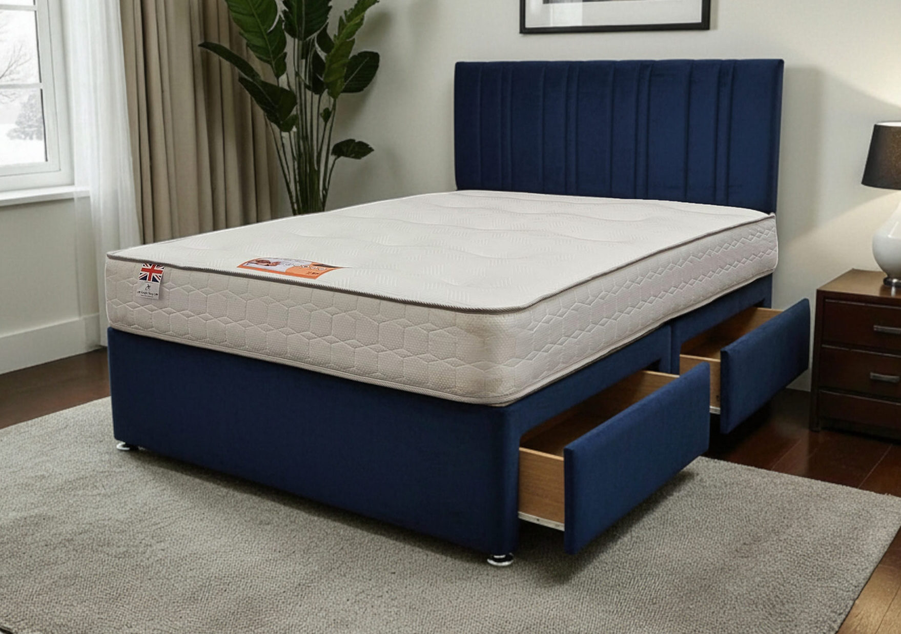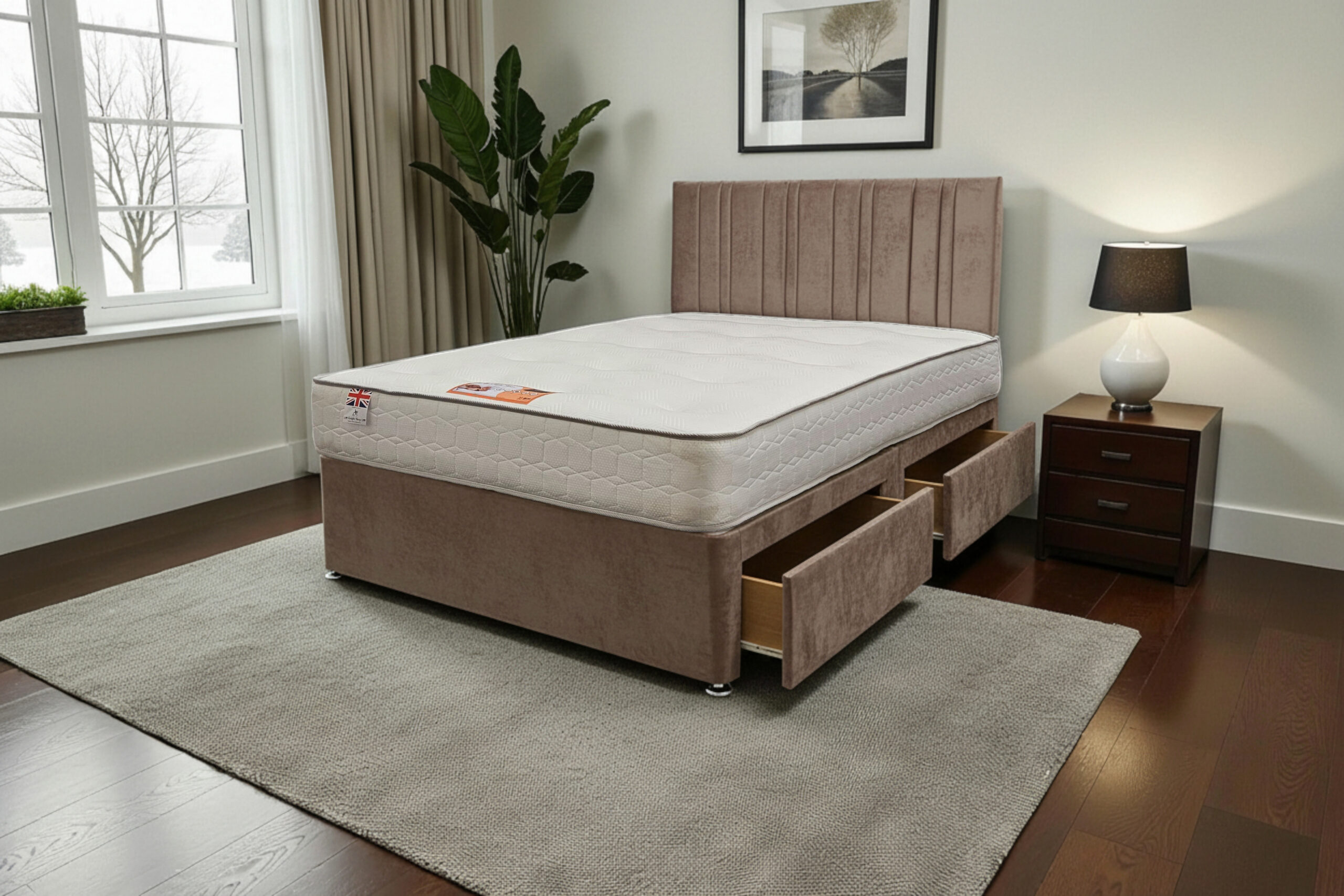 Our Sky Divan Bed is a premium-quality, customisable solution designed for comfort, durability, and modern living. Made with a strong wooden frame, it provides a firm, flat surface that supports all UK standard mattress types and helps extend mattress life.