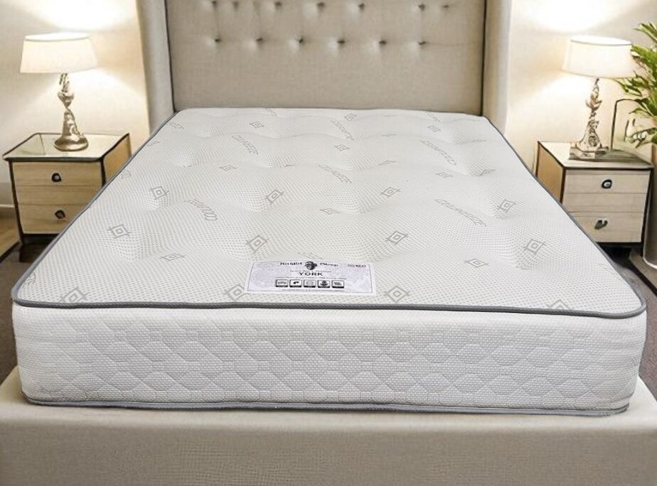 This York Mattress is a high-quality, UK-made sleep solution designed to deliver lasting comfort and dependable back support for a truly restful night. Crafted using premium materials, it features a well-balanced combination of supportive foam layers that gently contour to your body’s shape, helping to relieve pressure points and promote healthy spinal alignment. Whether you’re a back, side, or stomach sleeper, the mattress adapts to your sleeping position, offering the ideal mix of firmness and softness to enhance overall sleep quality. Its durable construction ensures long-term performance, maintaining its shape and support even with everyday use. Wrapped in a soft, breathable fabric, it helps regulate temperature and allows for better airflow, keeping you cool and comfortable throughout the night. It is also hypoallergenic and dust mite resistant, making it an excellent choice for people with allergies or sensitive skin. With its elegant design, thoughtful features, and reliable build, this mattress is perfect for anyone looking to upgrade their sleep experience with comfort, support, and lasting quality.